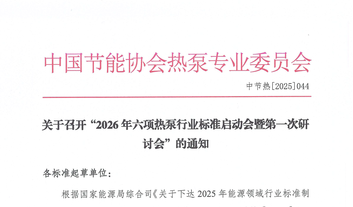 关于召开“2026年六项热泵行业标准启动会暨第一次研讨会”的通知