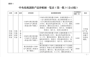 浙江省:空气源热泵等中央农机创新产品(第一批)最高补贴18000元