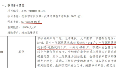 9393万预算,空气源热泵7701户,抚顺市东洲区第一批清洁取暖工程项目招标公告