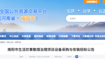 总投资2.25亿,煤改空气源热泵17000户,南阳市生活炊事散煤治理项目设备采购与安装招标公告