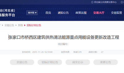 总投资1亿,张家口市桥西区15个小区空气源热泵替代燃气锅炉项目即将招标