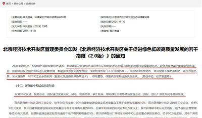 北京市经开区:获得市级补助的热泵等新能源供热项目,按照项目投资额的10%配套支持