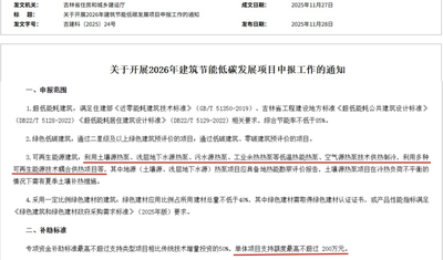 吉林省:对采用热泵技术等的可再生能源建筑最高补助200万元