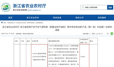 空气源热泵(配套谷物干燥机) 等中央农机创新产品可获得 中央财政补贴14000元-18000元