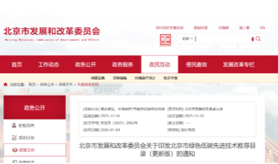 北京市节能环保中心开展2026年节能技术产品征集及更新工作