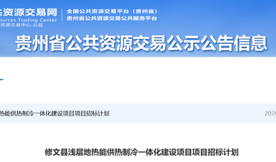 投资1.29亿,修文县浅层地热能供热制冷一体化建设项目项目招标计划