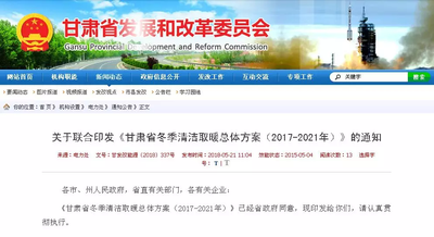 甘肃五年清洁取暖方案印发 鼓励利用空气源热泵清洁供暖