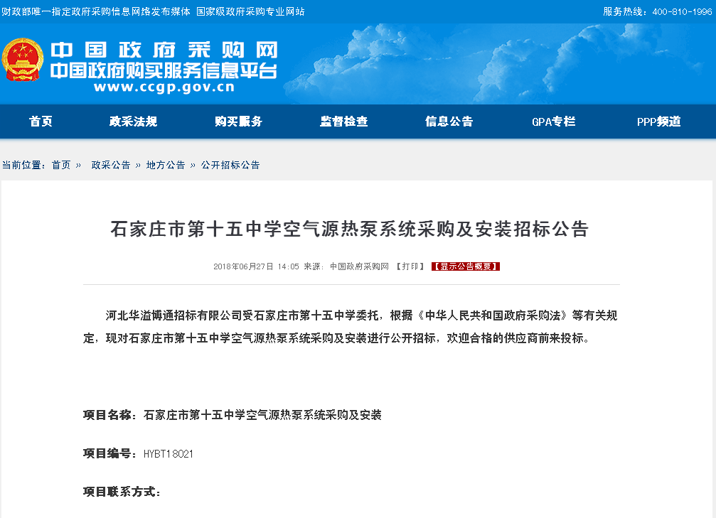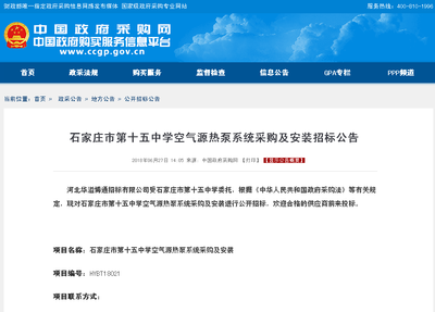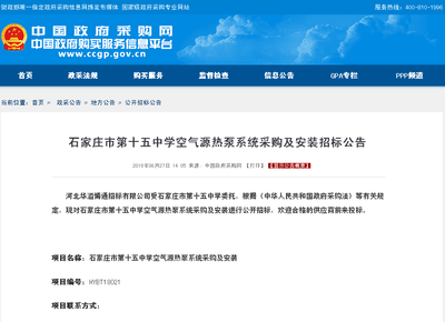 石家庄市第十五中学空气源热泵系统采购及安装招标公告