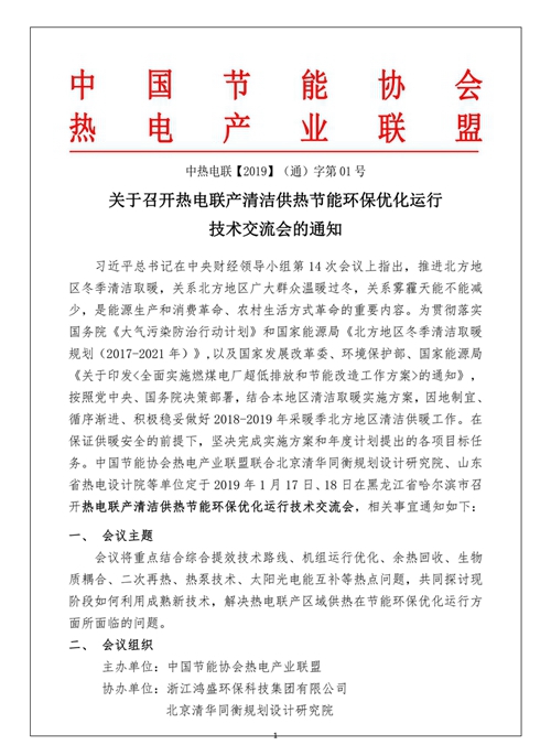 关于召开热电联产清洁供热节能环保优化运行技术交流会的通知