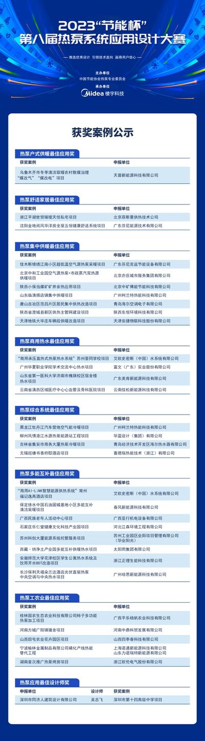 2023“节能杯”第八届热泵系统应用设计大赛结果公示