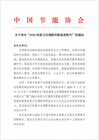 关于举办“2024热泵与空调配件配套采购节”的通知