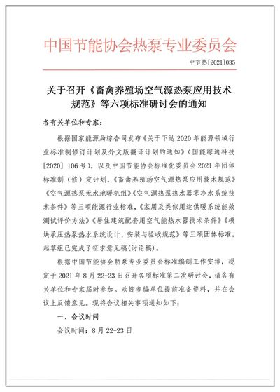 关于召开《畜禽养殖场空气源热泵应用技术规范》等六项标准研讨会的通知