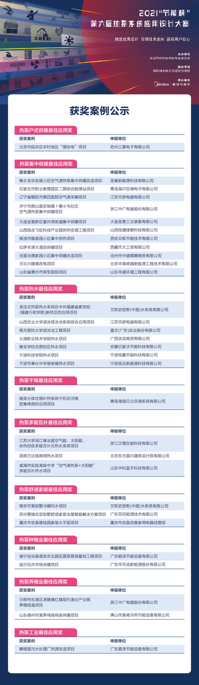 2021“节能杯”第六届热泵系统应用设计大赛获奖公示