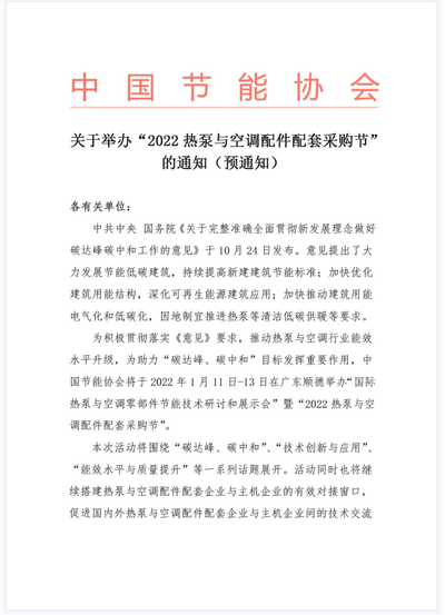 关于举办“2022热泵与空调配件配套采购节”的通知
