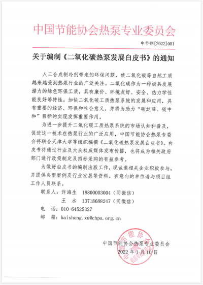 关于编制《二氧化碳热泵发展白皮书》的通知