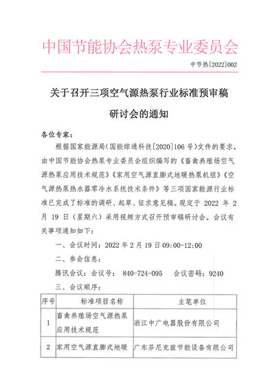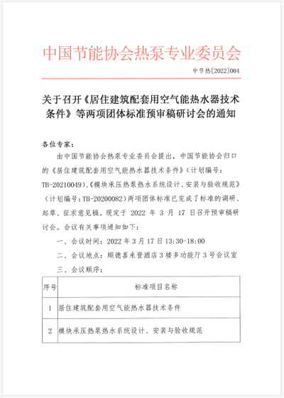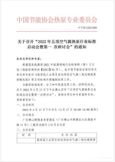 关于召开“2022年五项空气源热泵行业标准启动会暨第一次研讨会”的通知