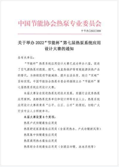 关于举办2022“节能杯”第七届热泵系统应用设计大赛的通知