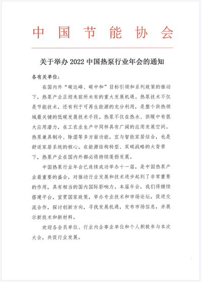 关于举办2022中国热泵行业年会的通知