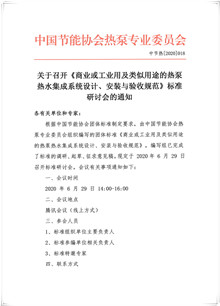 关于召开《商业或工业用及类似用途的热泵热水集成系统设计、安装与验收规范》标准研讨会的通知