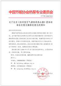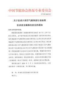 关于征求六项空气源热泵行业标准征求意见稿修改意见的通知
