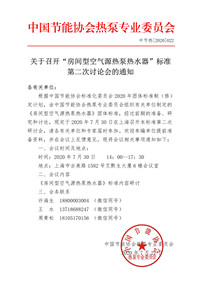 关于召开“房间型空气源热泵热水器”标准第二次讨论会的通知