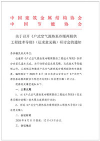 关于召开《户式空气源热泵冷暖两联供工程技术导则》(征求意见稿)研讨会的通知