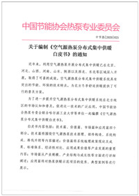 关于编制《空气源热泵分布式集中供暖白皮书》的通知
