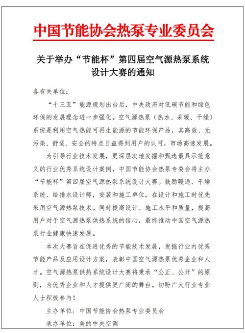 关于举办“节能杯”第四届空气源热泵供热系统设计大赛的通知