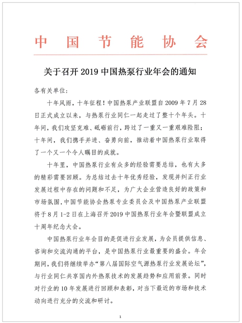 关于召开2019中国热泵行业年会的通知