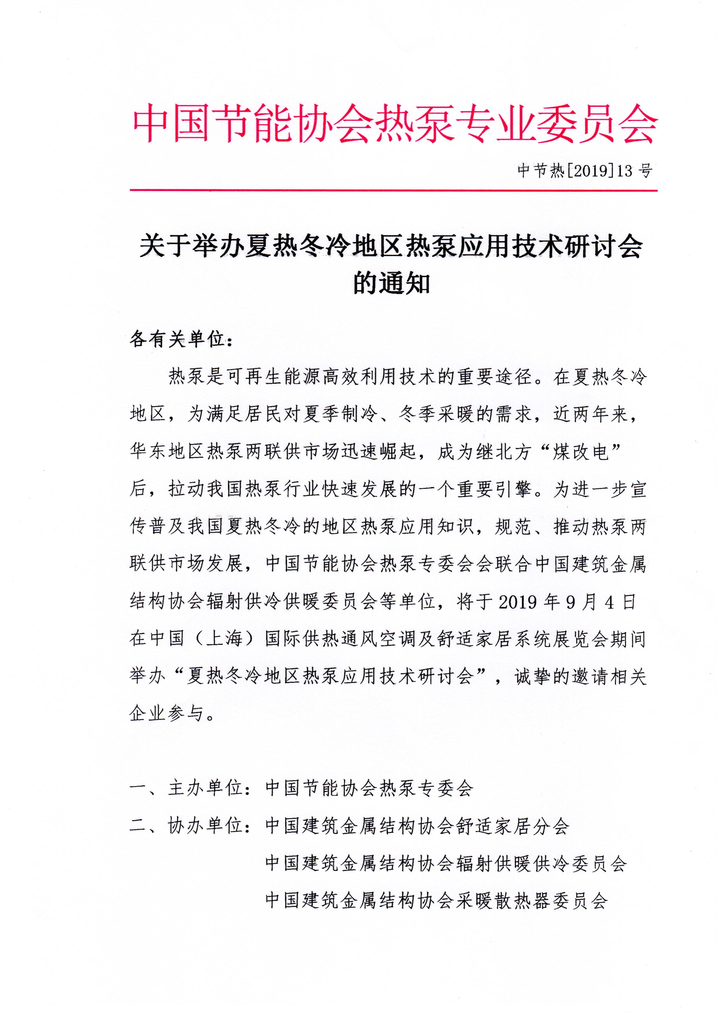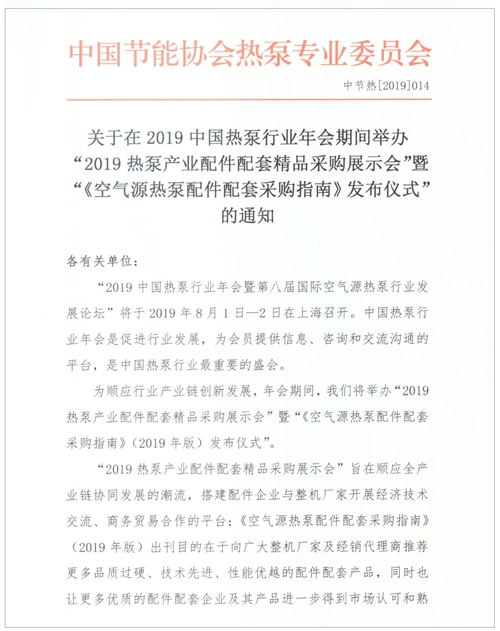 关于在2019中国热泵行业年会期间举办“2019热泵产业配件配套精品采购展示会”的通知