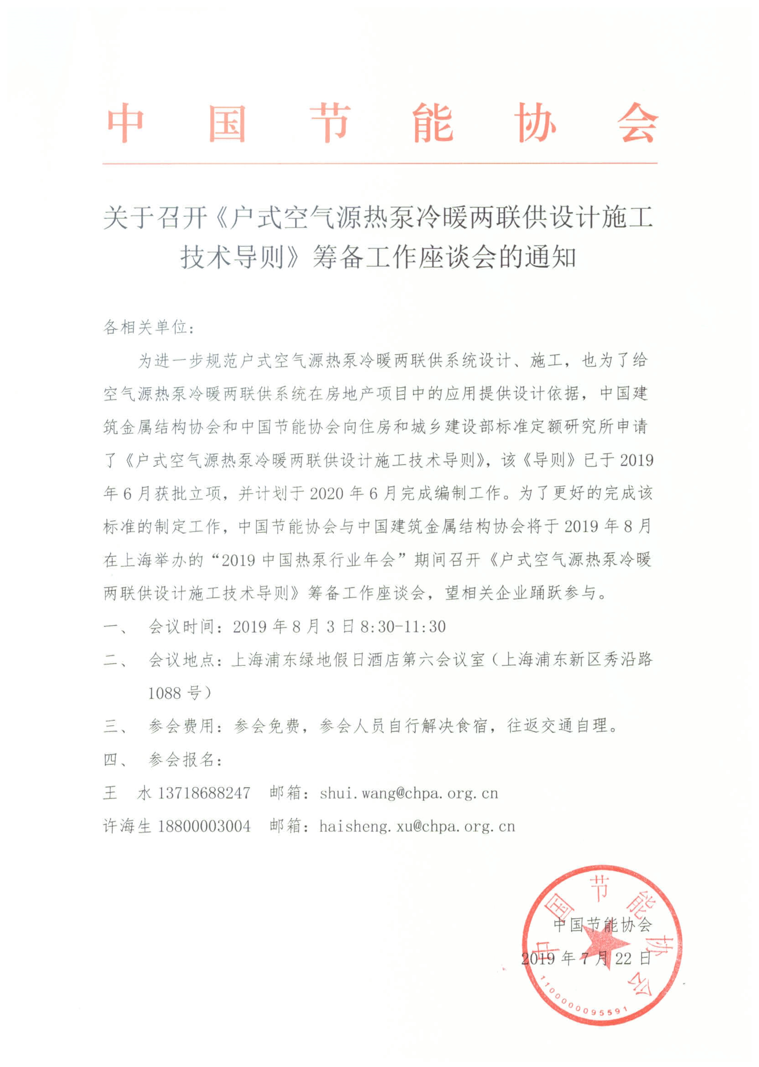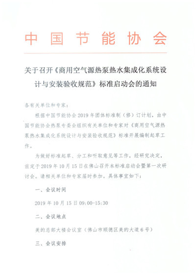 关于召开《商用空气源热泵热水集成化系统设计与安装验收规范》标准启动会的通知