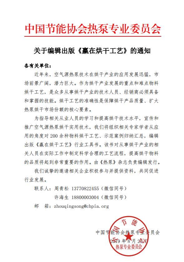 关于编辑出版《赢在烘干工艺》的通知