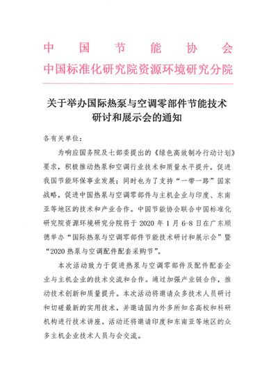 关于举办国际热泵与空调零部件节能技术研讨和展示会的通知