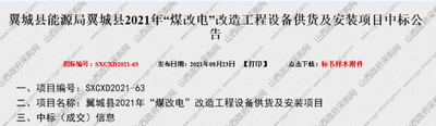 再发力!中科福德中标2021翼城县两个标段煤改电项目