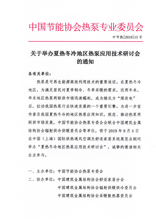 关于举办夏热冬冷地区热泵应用技术研讨会的通知