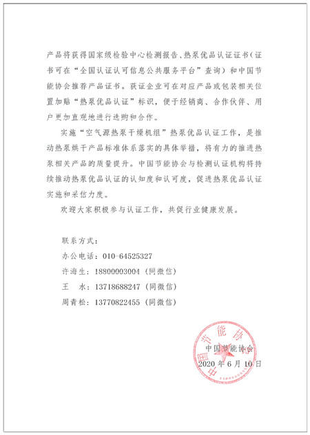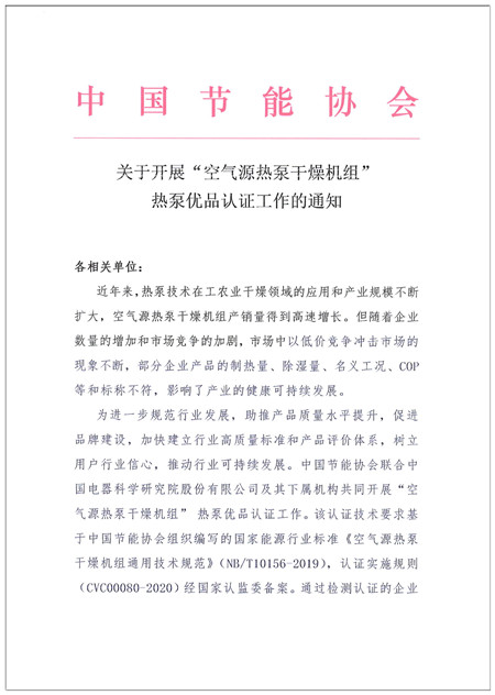 关于开展“空气源热泵干燥机组”热泵优品认证工作的通知