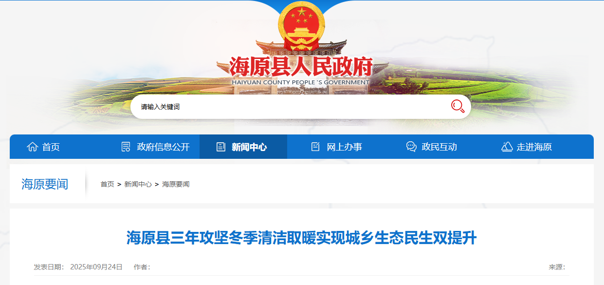 海原县紧扣“双碳”目标,大力实施冬季清洁取暖三年攻坚行动,累计投资2.3亿元,完成改造面积185万平方米,惠及城乡居民3.8万户,实现县城清洁取暖率100%、农村超70%,全县空气质量显著改善,农村人居环境持续优化。一是统筹联动强保障,构建高效推进体系。构建高位推进体系,建立党政主要领导牵头、分管领导落实的责任机制,形成住建部门统筹、多部门协同、各乡镇(街道)实施三级联动格局。强化过程管控,以“周调度、月协调、季督查、年考评”推动工作,累计开展调度40余次、专项推进会20余场、技术培训10余次、督导检查50余次。严格资金监管,中央专项补助资金2.6亿元全额到位,支付率达93%;出台长效运维方案,建成分散式数字化监管平台,设立本地化服务网点,保障项目长效运行。二是分类施策定路径,优化清洁取暖模式。在调研17个乡镇(街道)取暖现状、资源及需求基础上,差异化推进改造。城区重点实施4个区域燃煤锅炉超低排放改造,同步完成3077户平房(30万平方米)清洁化改造、29.4万平方米公共建筑及老旧小区节能改造;农村以空气源热泵为核心技术路线,完成3.5万户改造(热水机34894户、热风机1106户),同步推进5077户农房(33万平方米)节能改造,实现清洁取暖与建筑能效双提升。三是综合效益显成效,生态民生共同受益。农村“煤改电”年削减散煤7万吨,城区5台65蒸吨以上燃煤锅炉污染物减排超85%,公共建筑推广空气能热泵后年运维成本降40%以上,能源结构持续优化,生态效益突出。带动电网升级等基础设施建设,创造就业岗位0.3万余个;农村取暖成本降30%以上,建筑保温性能提20%,实现“农户用得起、用得好”,社会效益显著。传统取暖方式全面替代,改造农户普遍反馈“干净、省心、省钱”,满意度超90%,农村人居环境实现质的提升。