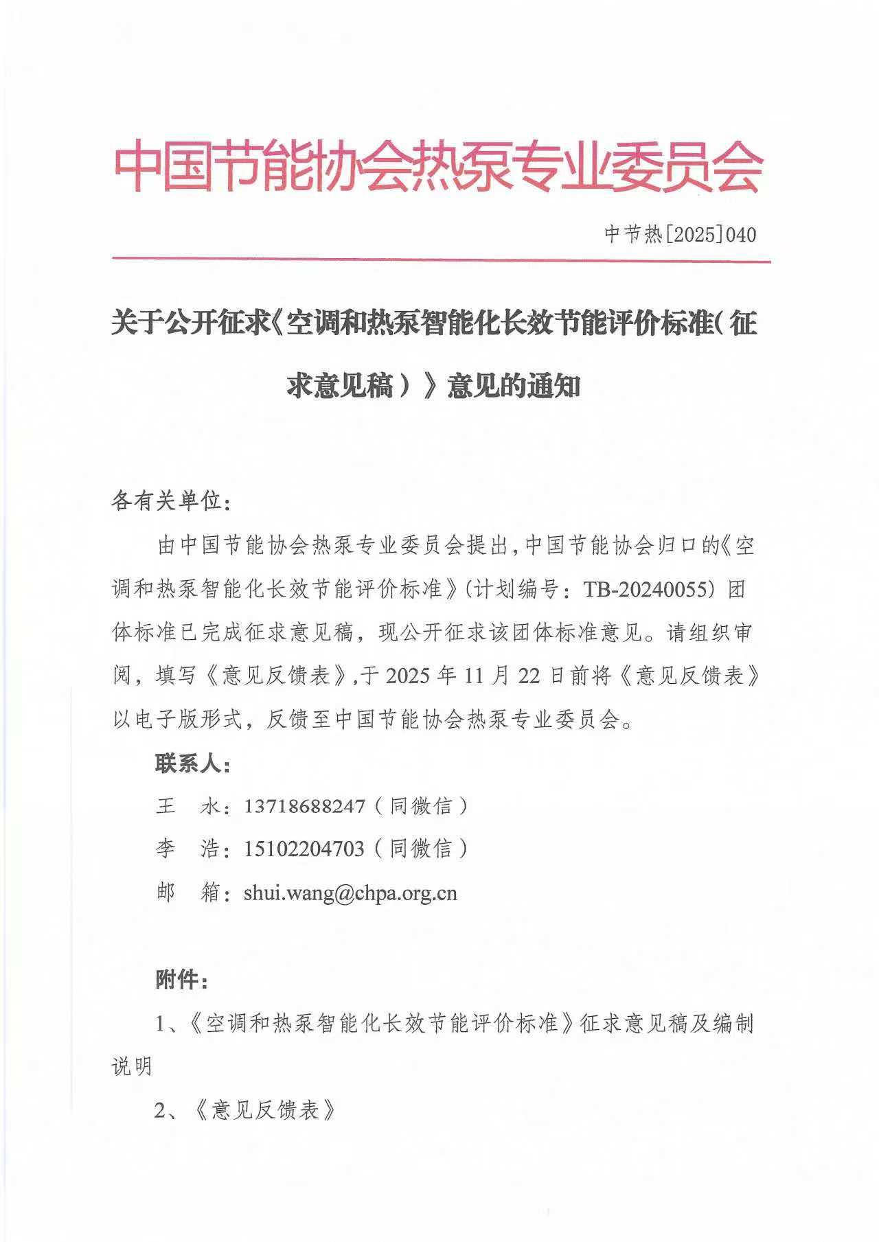 关于公开征求(空调和热泵智能化长效节能评价标准(征求意见稿)》意见的通知