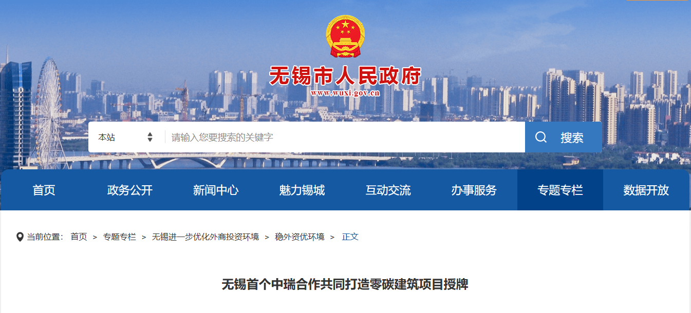 无锡首个中瑞合作共同打造零碳建筑项目授牌,项目构建了涵盖高效地源热泵的多能互补的低碳能源系统