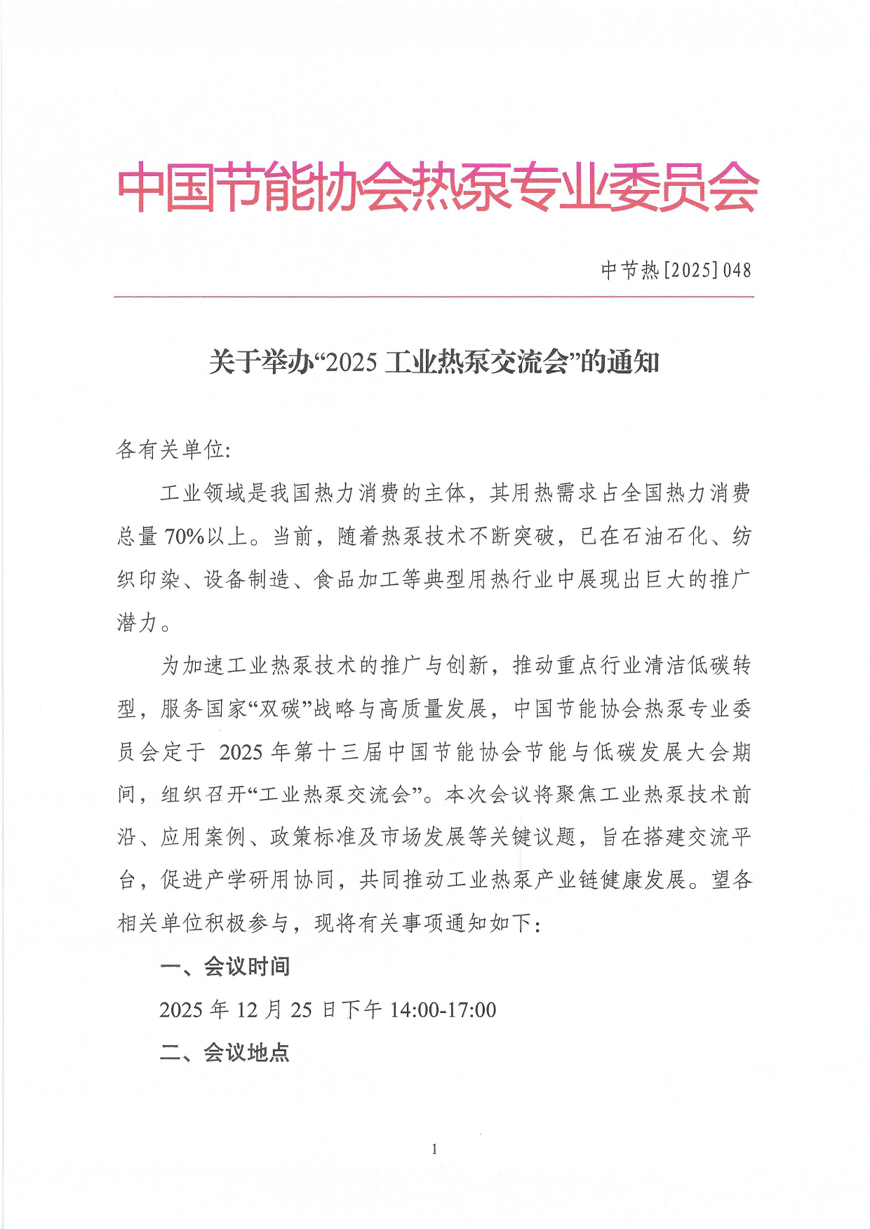 关于举办2025工业热泵交流会的通知