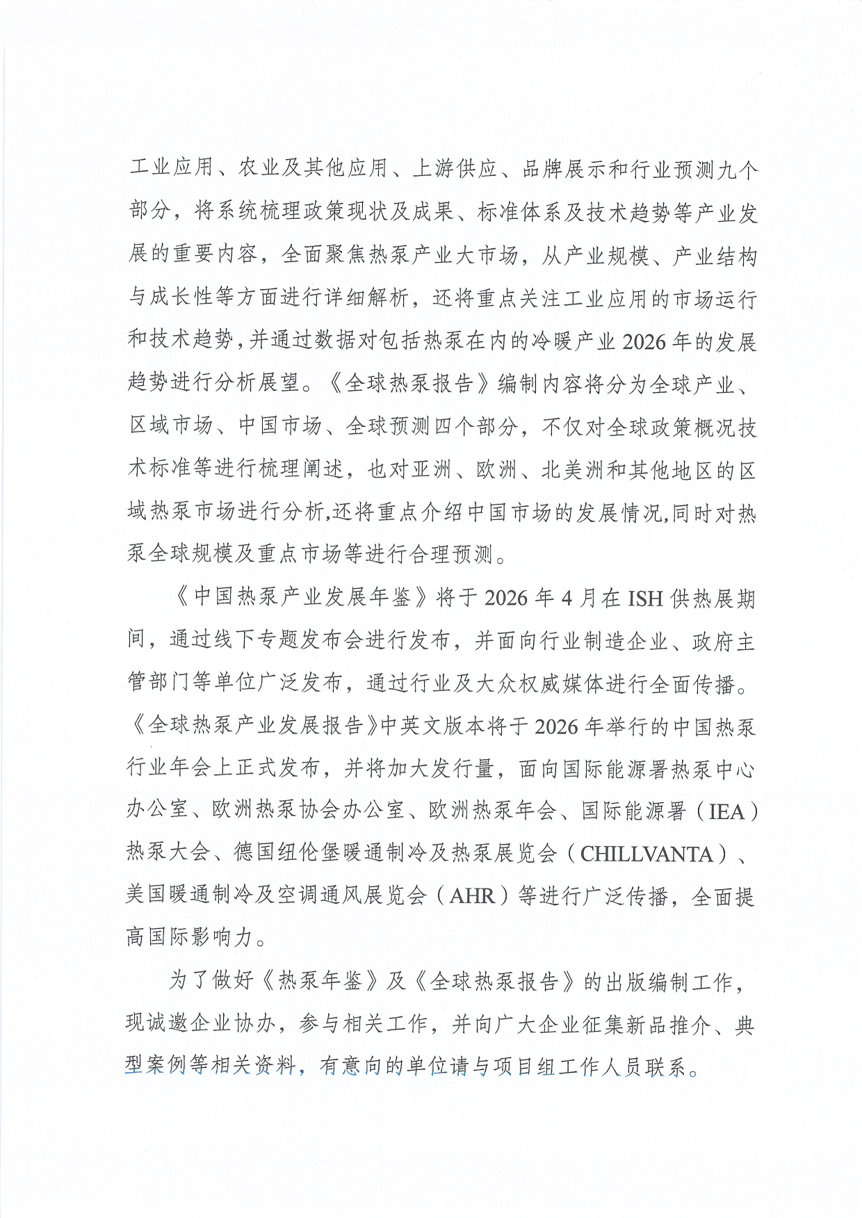 关于征集2026年度《中国热泵产业发展年鉴》《全球热泵产业发展报告》中英文版本参编单位的通知