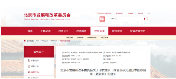 近日,北京市发展和改革委员会发布《北京市绿色低碳先进技术推荐目录(更新版)》。入选目录的热泵技术如下: