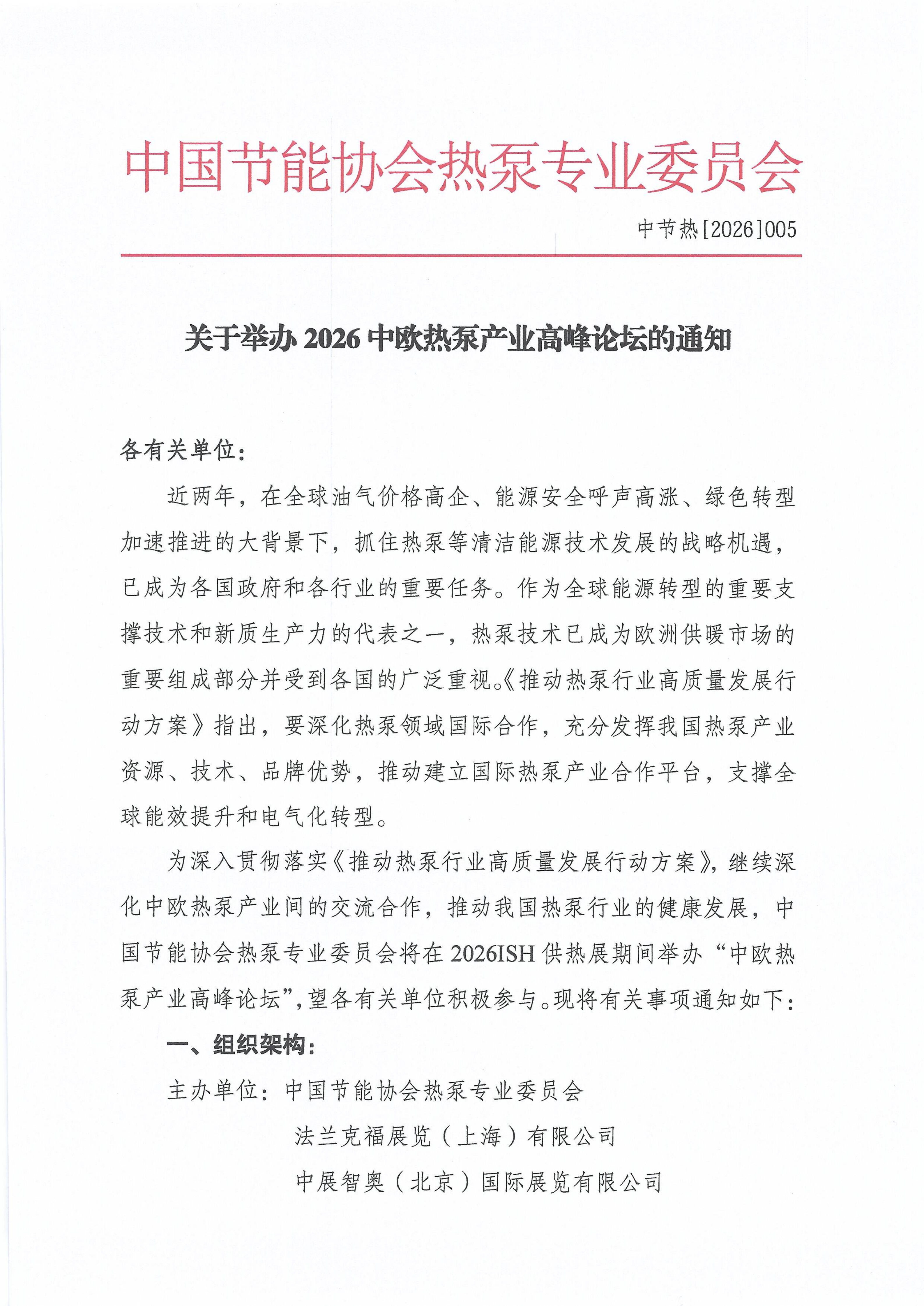 关于举办2026中欧热泵 产业高峰论坛的通知