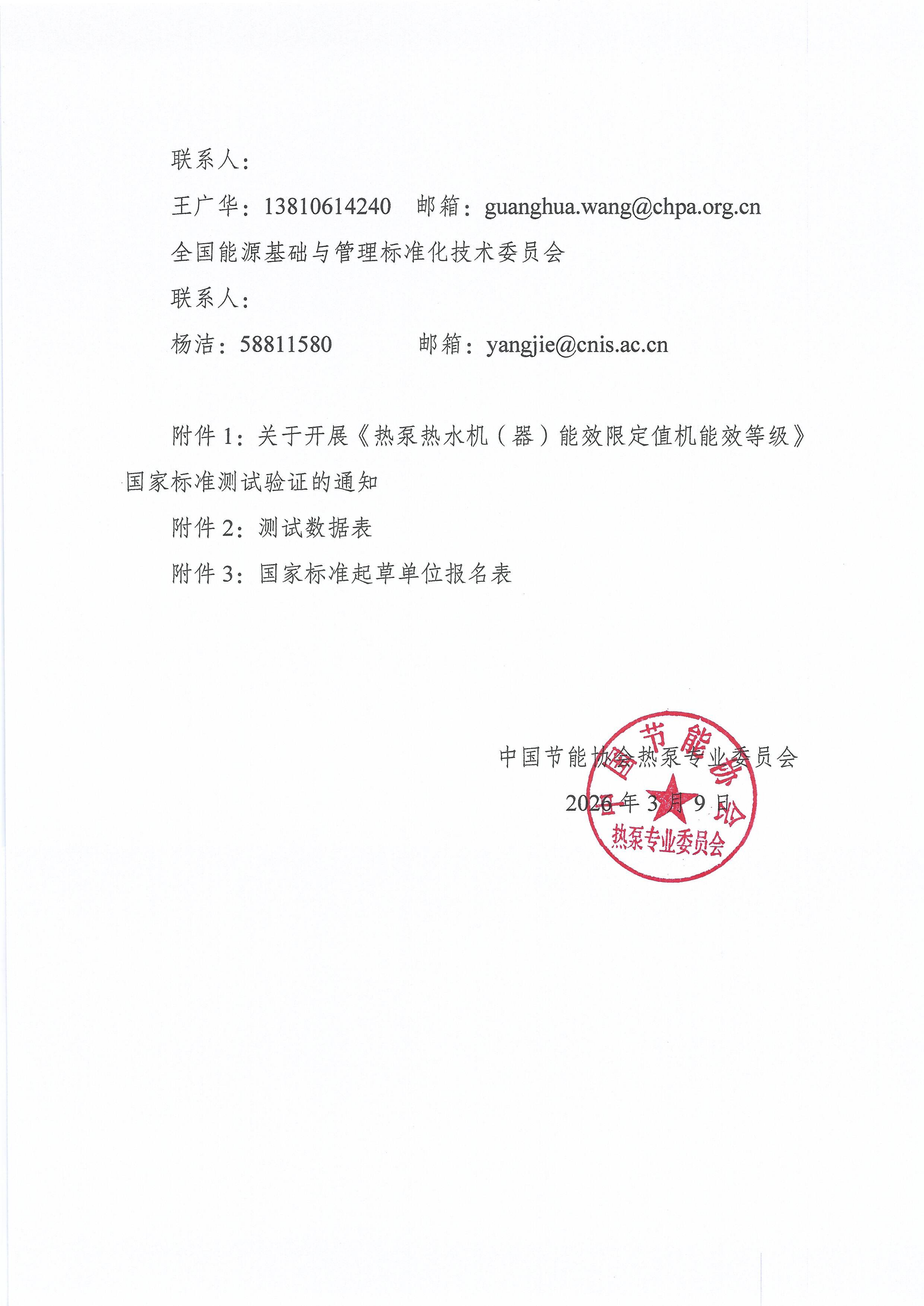 附件1:关于开展《热泵热水机(器)能效限定值及能效等级》国家标准测试验证的通知